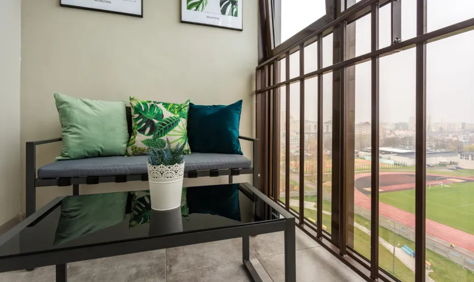 The balcony is well designed, comfortable, functional, and weatherproof. The design stage was oriented towards designing a multi-use outdoor lounge, which could be used during relaxation, light gardening, and socialization.Design Objectives: